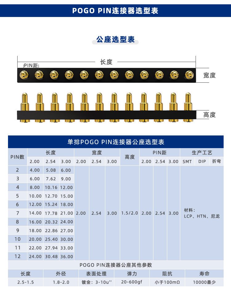 Profesjonalnie projektujemy, produkujemy i sprzedajemy szpilki ładujące pogo do telefonów komórkowych, szpilki baterii, szpilki antenowe oraz inne szpilki i złącza pogo. Kołek ładowania wysokiego prądu Złącza męskie i żeńskie charakteryzują się niewielkimi rozmiarami, dużym prądem, mocnymi stykami i stabilną wydajnością.